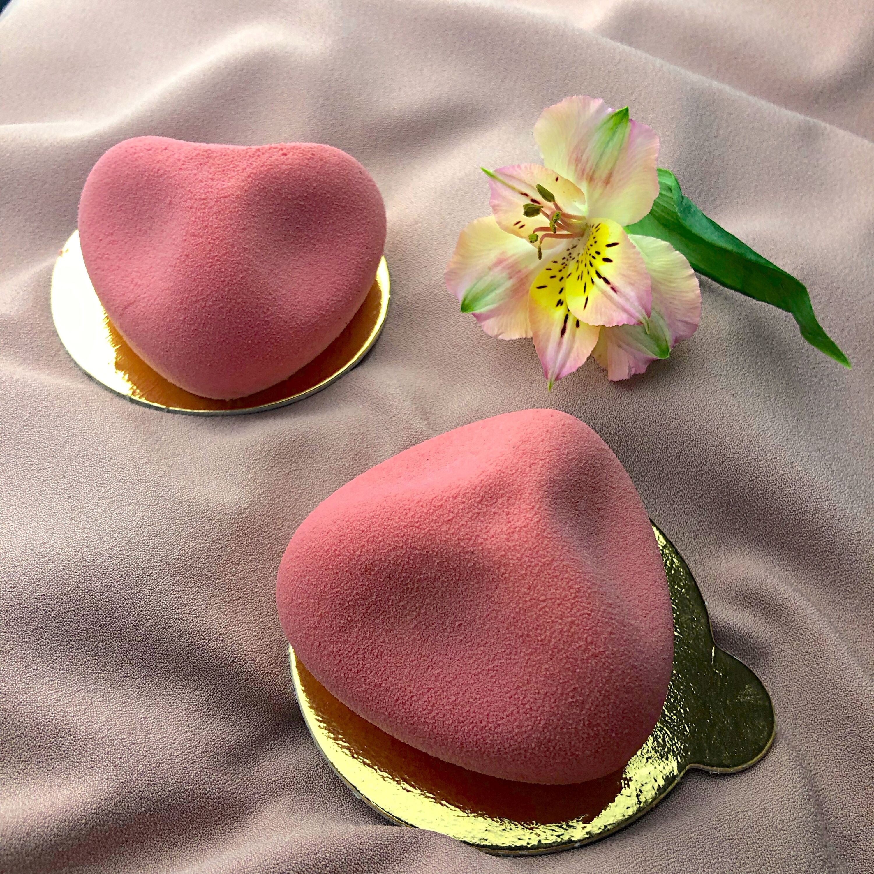 Мусс из грейпфрута в комбинации со сладким клубничным желе на ароматном фисташковом бисквите.